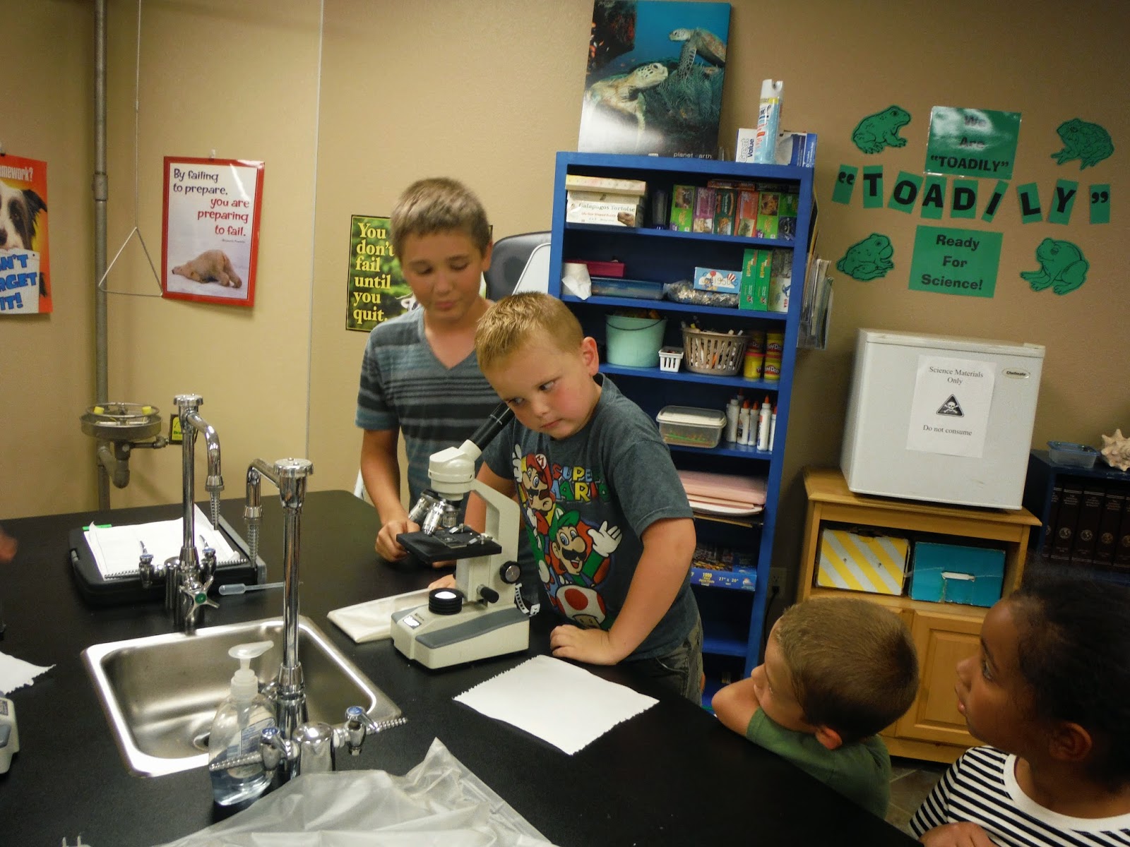 Thanks to Mrs. Perry and the eighth grade students for allowing first graders to look for microscopic organisms through the microscopes. Each eighth grade student was assigned to be the 'teacher' to a group of first graders. A good time was had by all!!
